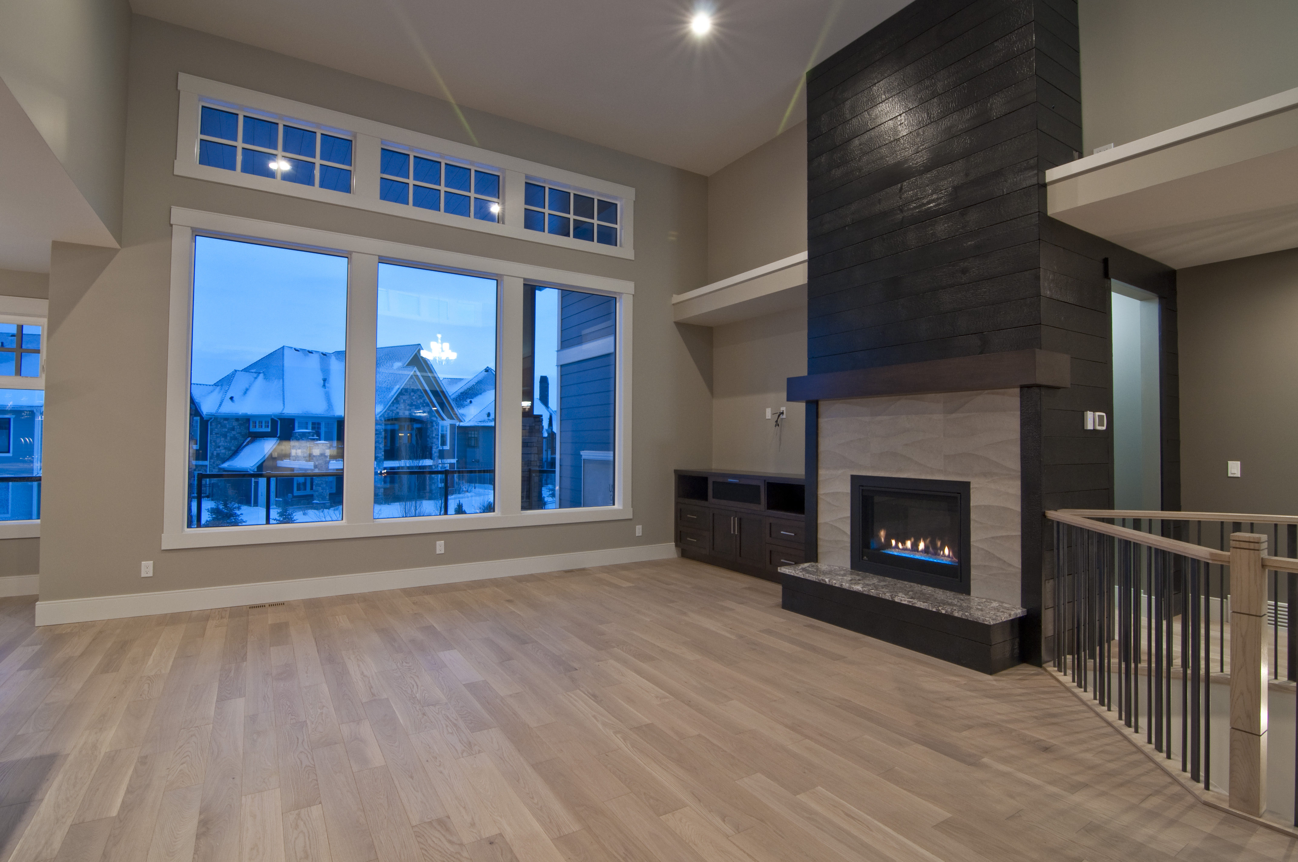 - 15’ charred wood feature fireplace with custom mantel