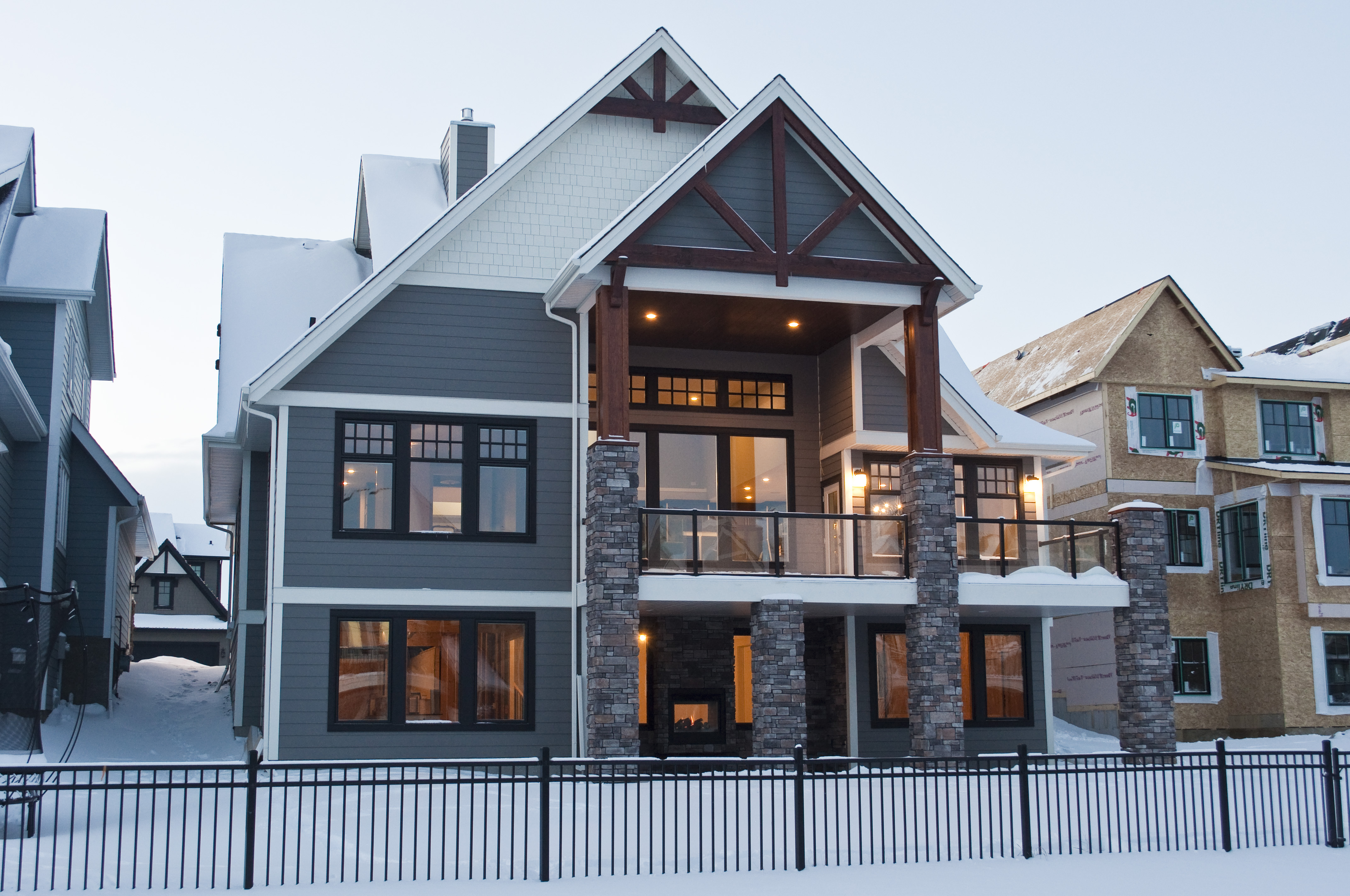 - Timber & Masonry accents on front and rear elevations