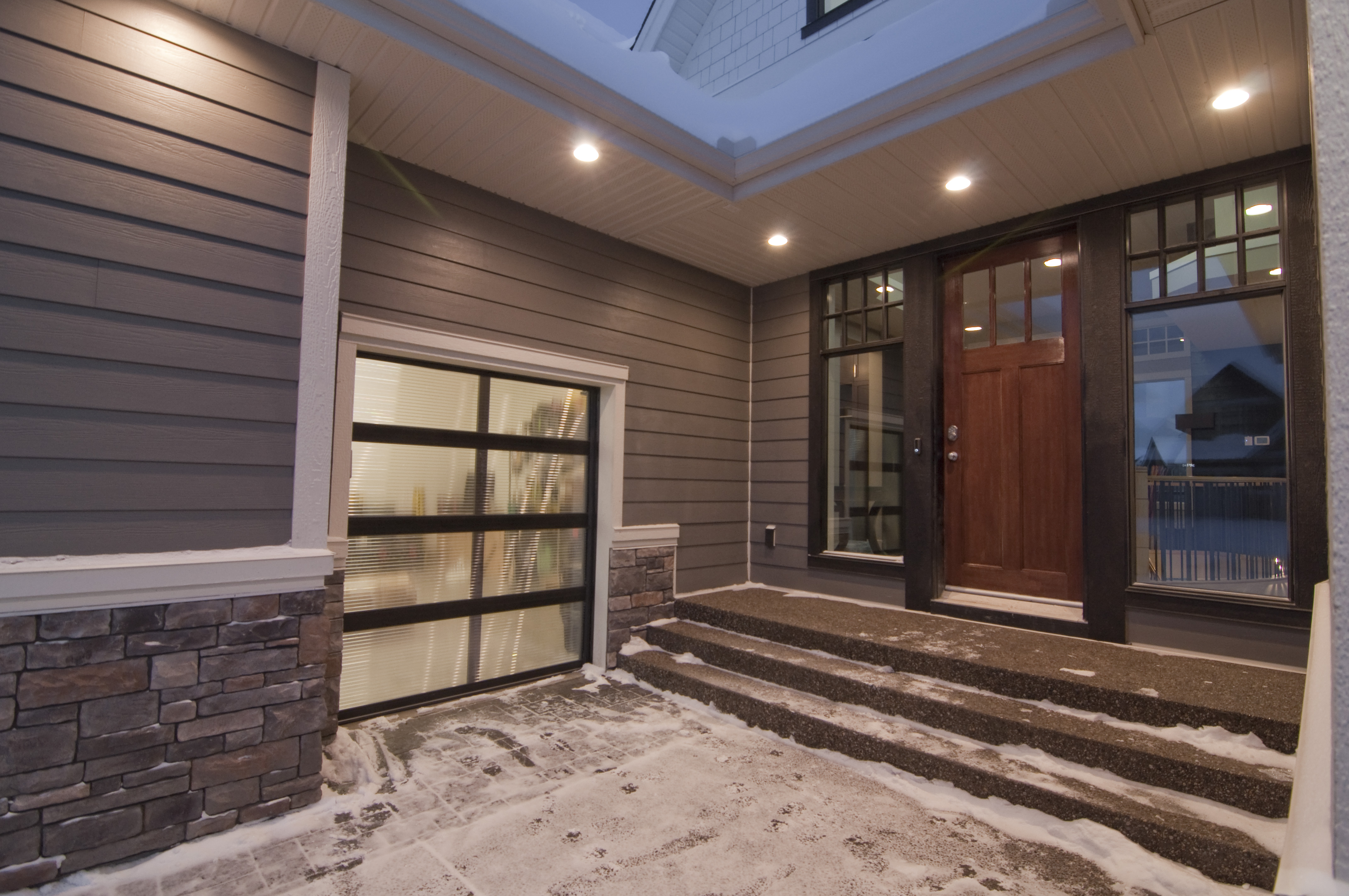 - Motorsport Garage door separate entry; 1-black aluminum double pane insulated glass overhead door